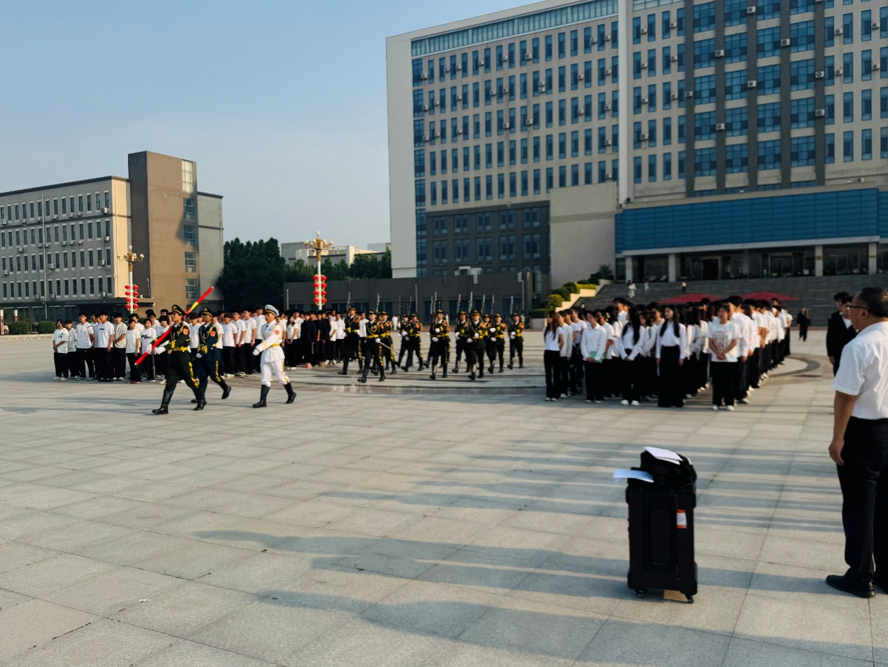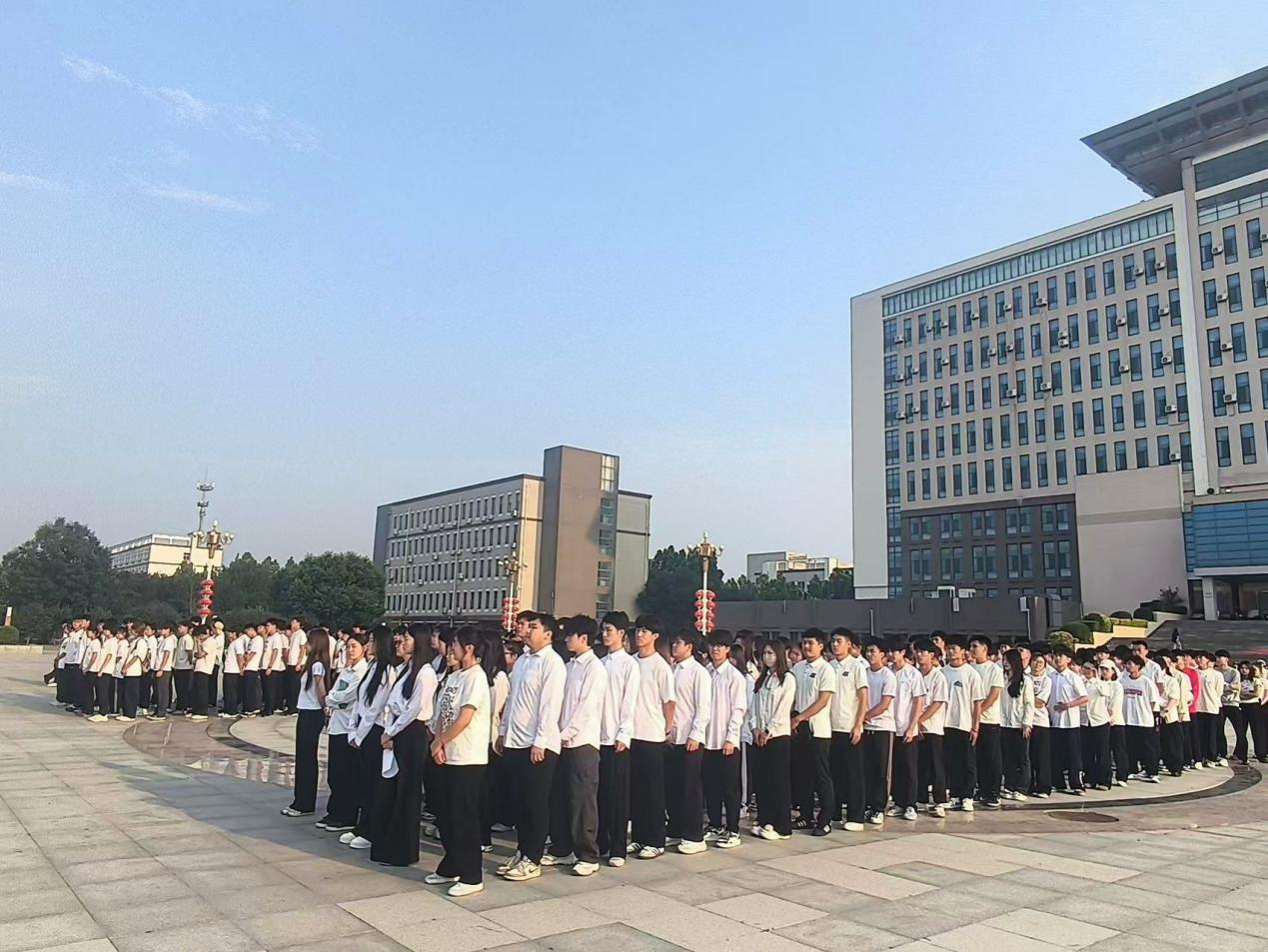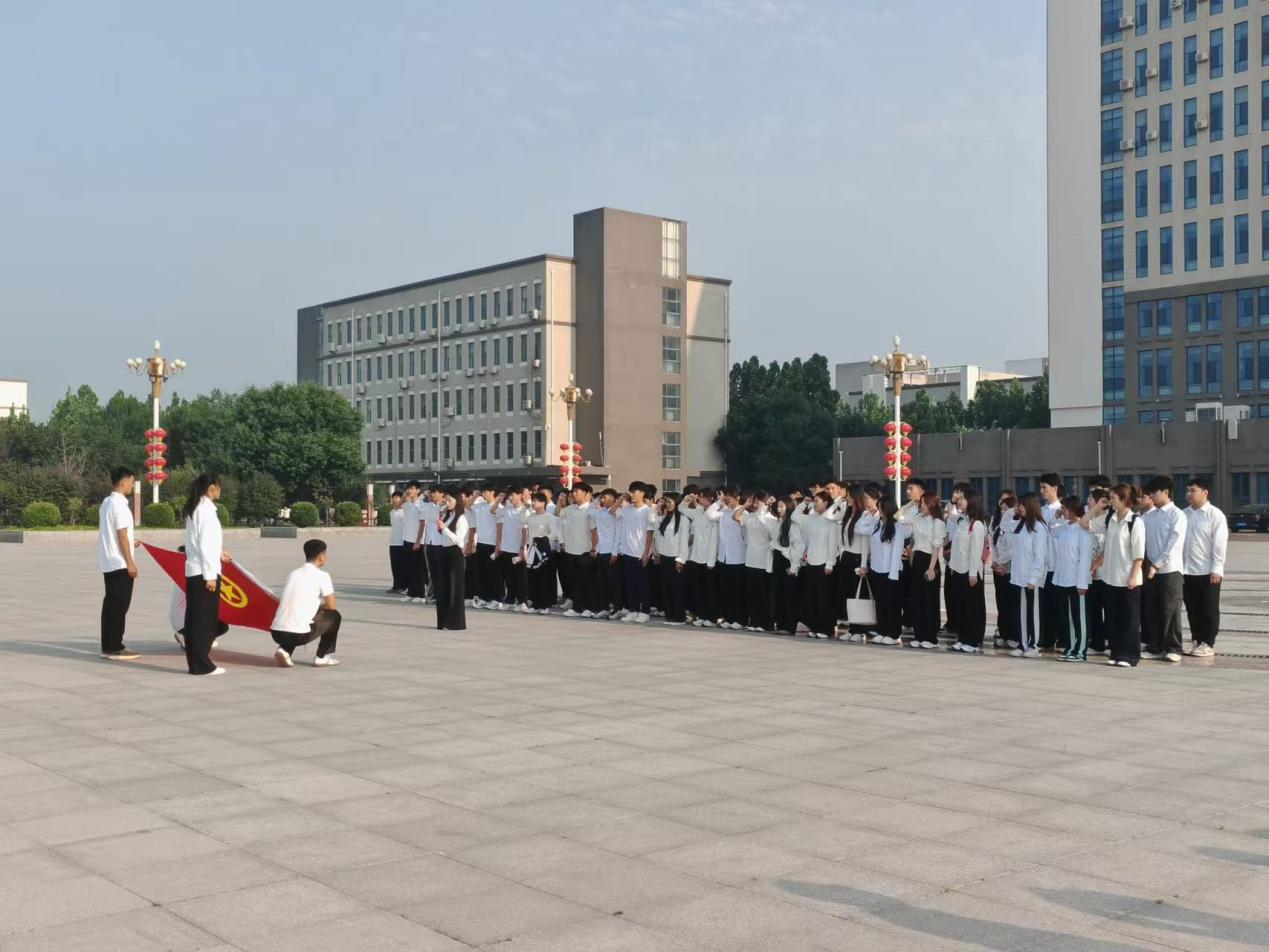 随着激昂的国歌奏响,五星红旗冉冉升起,全体人员庄严肃立,向国旗行注目礼。鲜艳的五星红旗在朝阳的映照下熠熠生辉,也点燃了我院团员们内心的爱国热情与奋斗之志 。