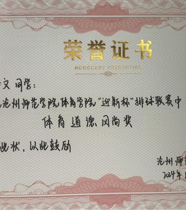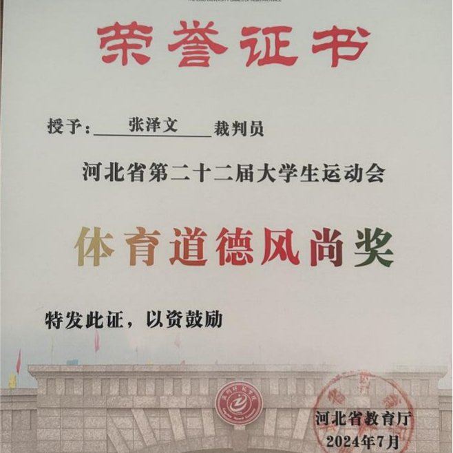 2024年河北省第二十二届大学生运动会中荣获“体育道德风尚奖”